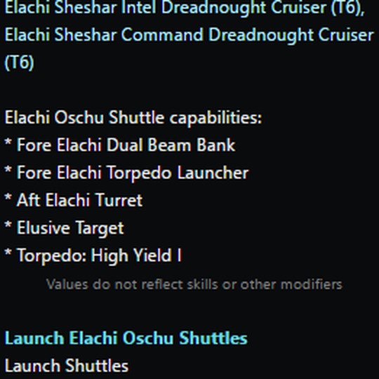 This vessel has 1 Hangar Bay that comes equipped with [Hangar - Elachi Oschu Shuttles]