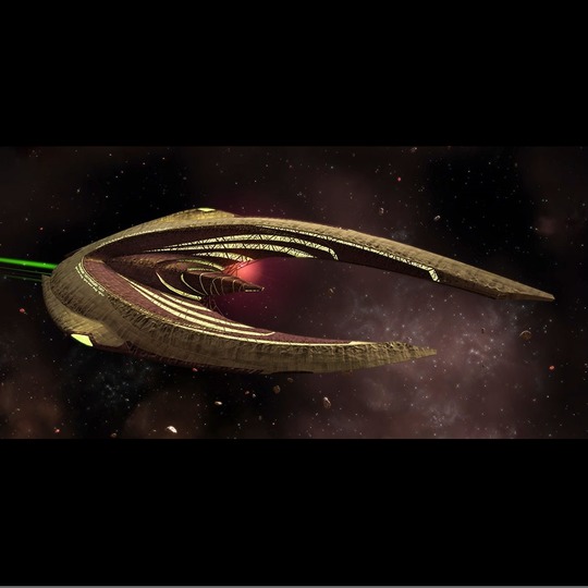 Despite a relatively civilian design (when seen through the unique lens of Hur'q society), these vessels are capable of a surprising level of self-defense, and can easily stand toe-to-toe with warships of other species. With minimal retrofitting, their harmonic interfaces can be made to interact with more conventional technology, and can thus be flown by most sentient species.