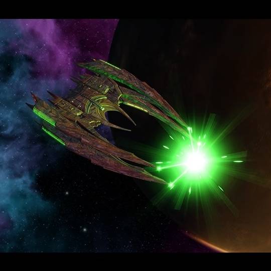 The Shrike Intel Juggernaut [T6] is a deliberate predator, careful and precise. It takes its time with defeated foes, picking away at them piece by piece. With tremendous hull strength and diverse equipment, it can afford to wait. The Portal Weapon captured from Daystrom Station gives it unprecedented mobility for a ship its size. While the earth bird requires a thorny bush to provide its larder, the ship which bears its name fills hard vacuum instead, pecking the wrecks to grow its eclectic mélange of weapons systems and technologies. The infamous changeling Vadic helmed the great beast for a time, but its current ownership remains a mystery, and a reminder that the universe is vaster and more varied than the power games of nations. Individuals with patience, cunning, and opportunity can and do make tremendous contributions to the course of history.