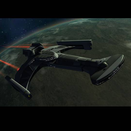 Known by Klingons in the 23rd century as the "Lord of the Battlefield," the D9 now utilizes cutting-edge technology in the conflicts of the modern era. A hangar bay with DuQwI’ fighters compliments an impressive arsenal, including the Disruption Pulse Emitter.